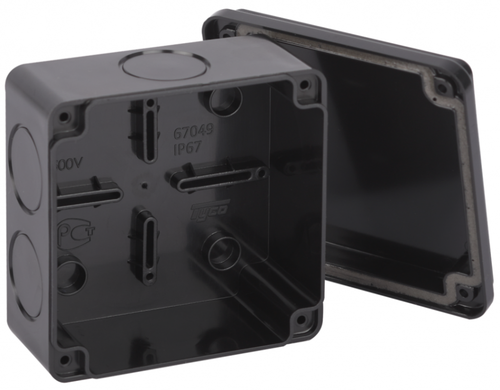 Коробка распаячная для открытой проводки 100х100х50 мм без гермовводов, черная