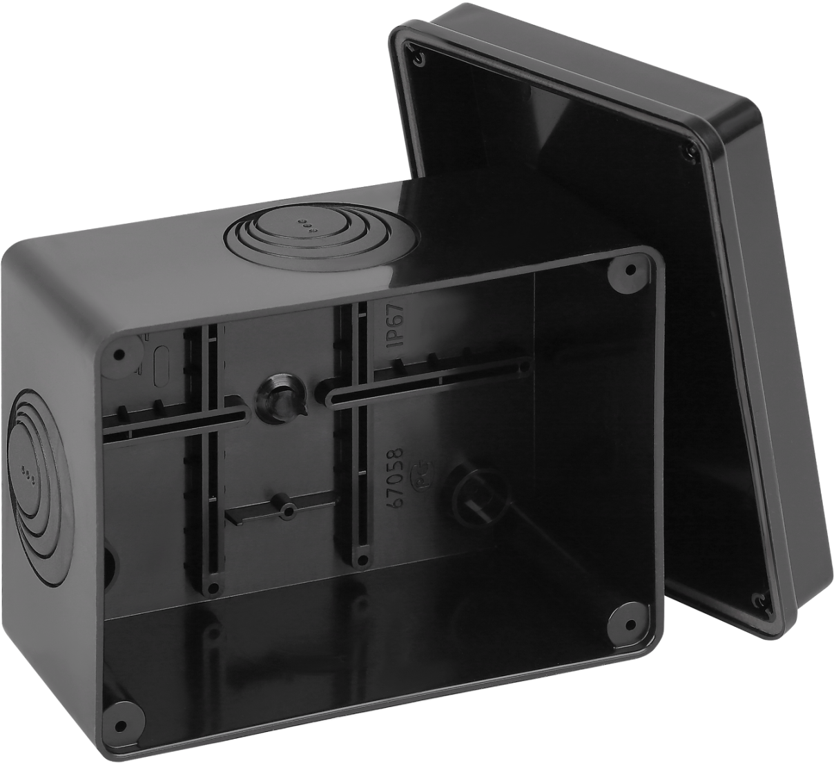 Коробка распаячная для открытой проводки 150х110х90 мм без гермовводов, подъездная, черная