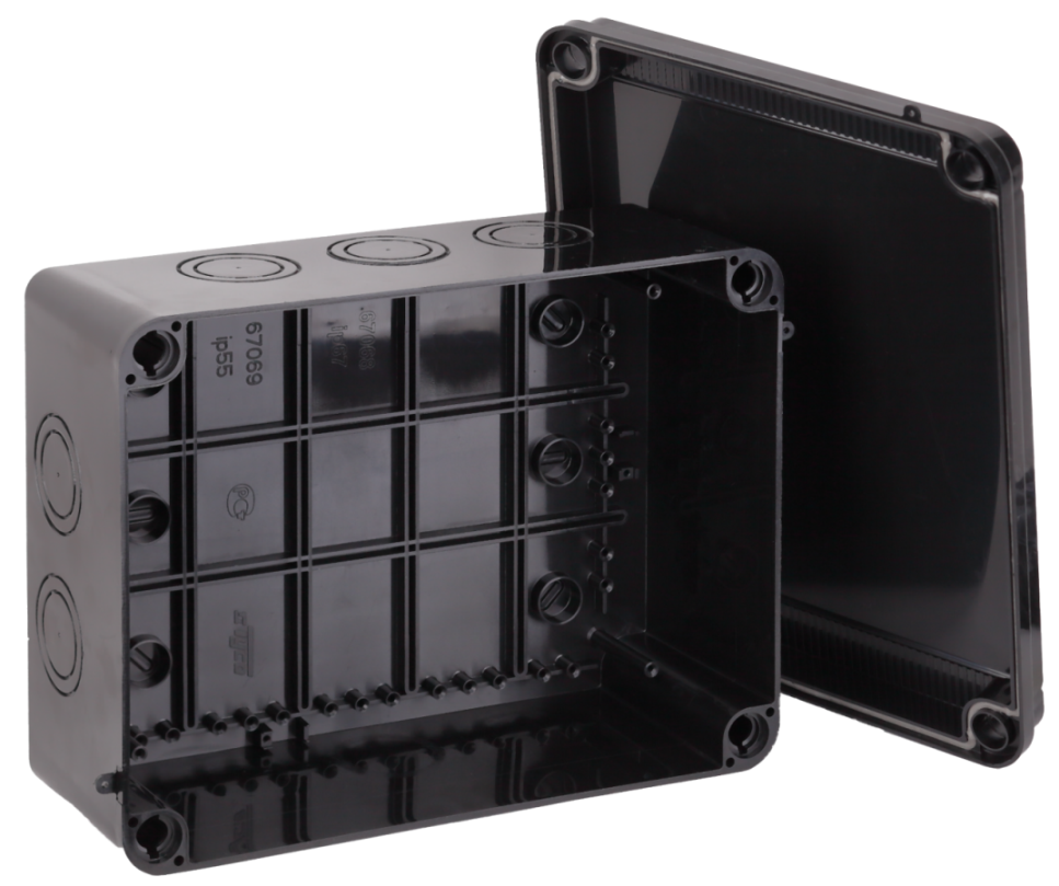 Коробка распаячная для открытой проводки 300х220х120 мм без гермовводов, черная