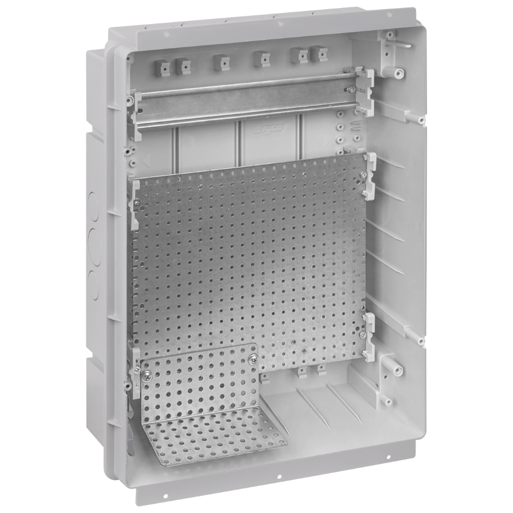 На монтажные панели устанавливаются ТВ-разветвители, Wi-Fi роутеры, патч-панели и другое слаботочное оборудование.