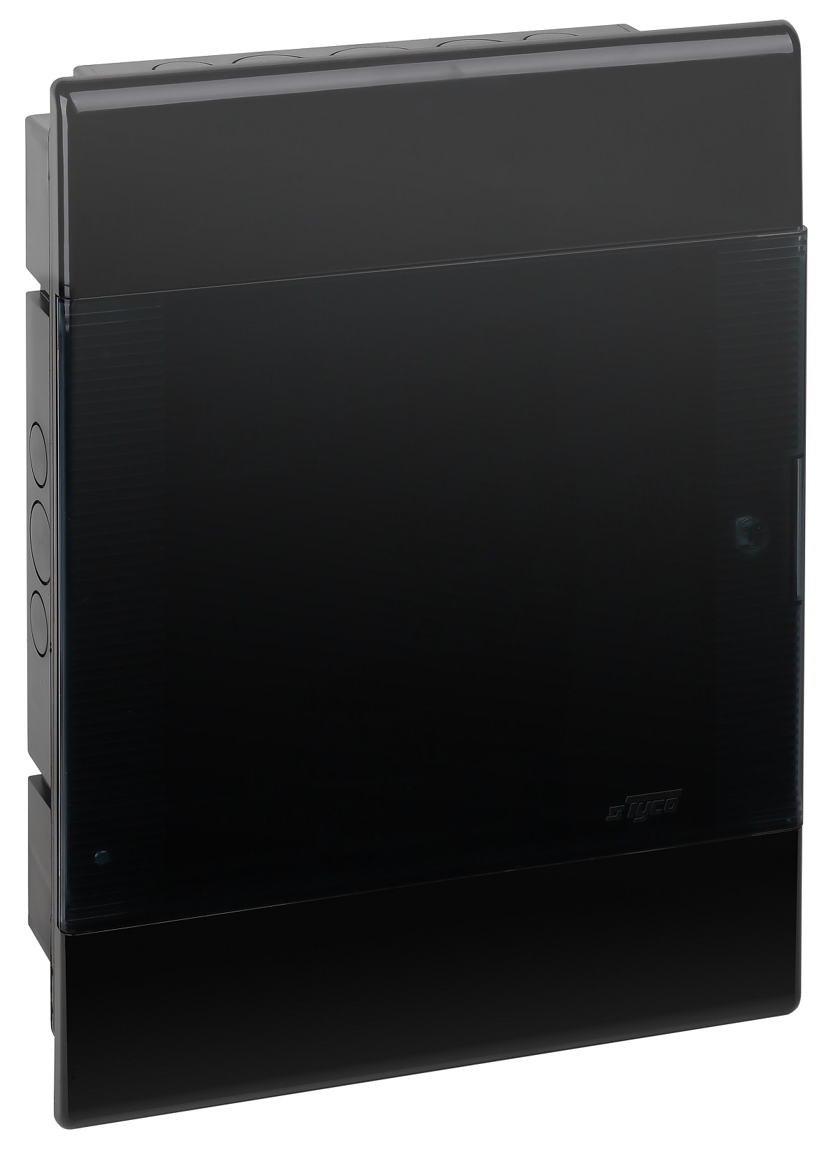 Щиток для скрытой проводки с горизонтальной прозрачной дверцей на 24 модуля черный IP40 (ЩРВ-П-24)