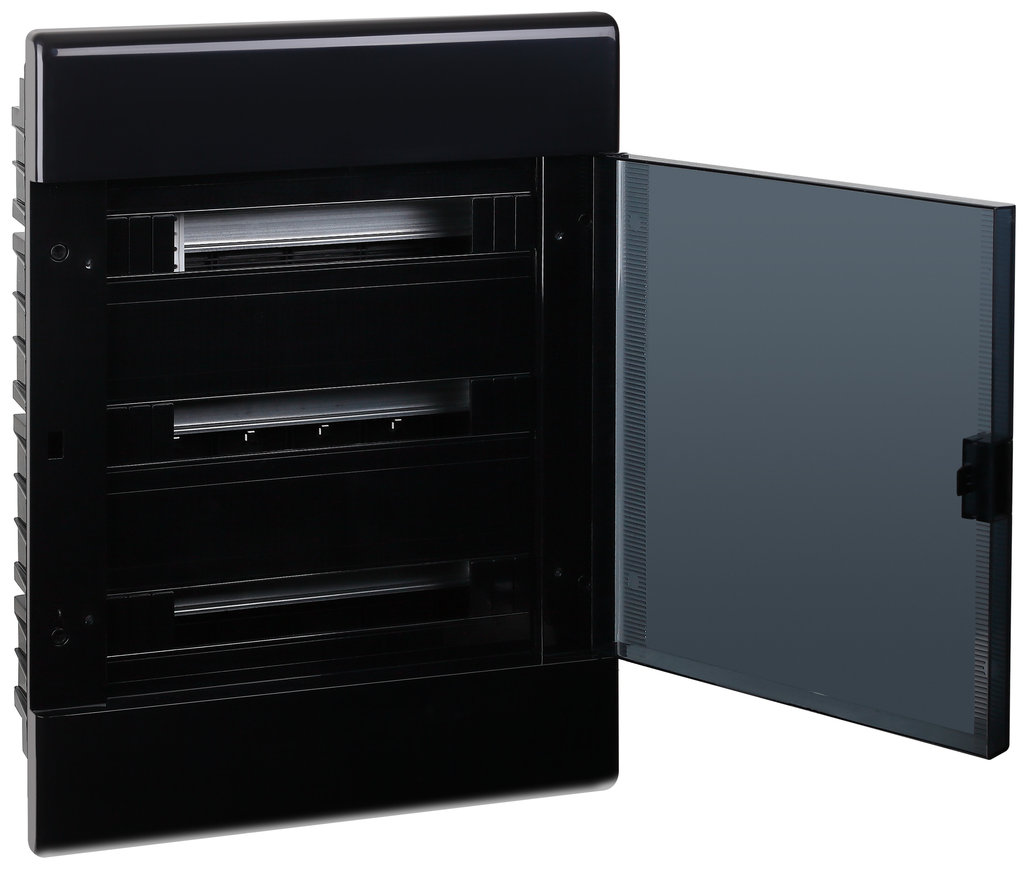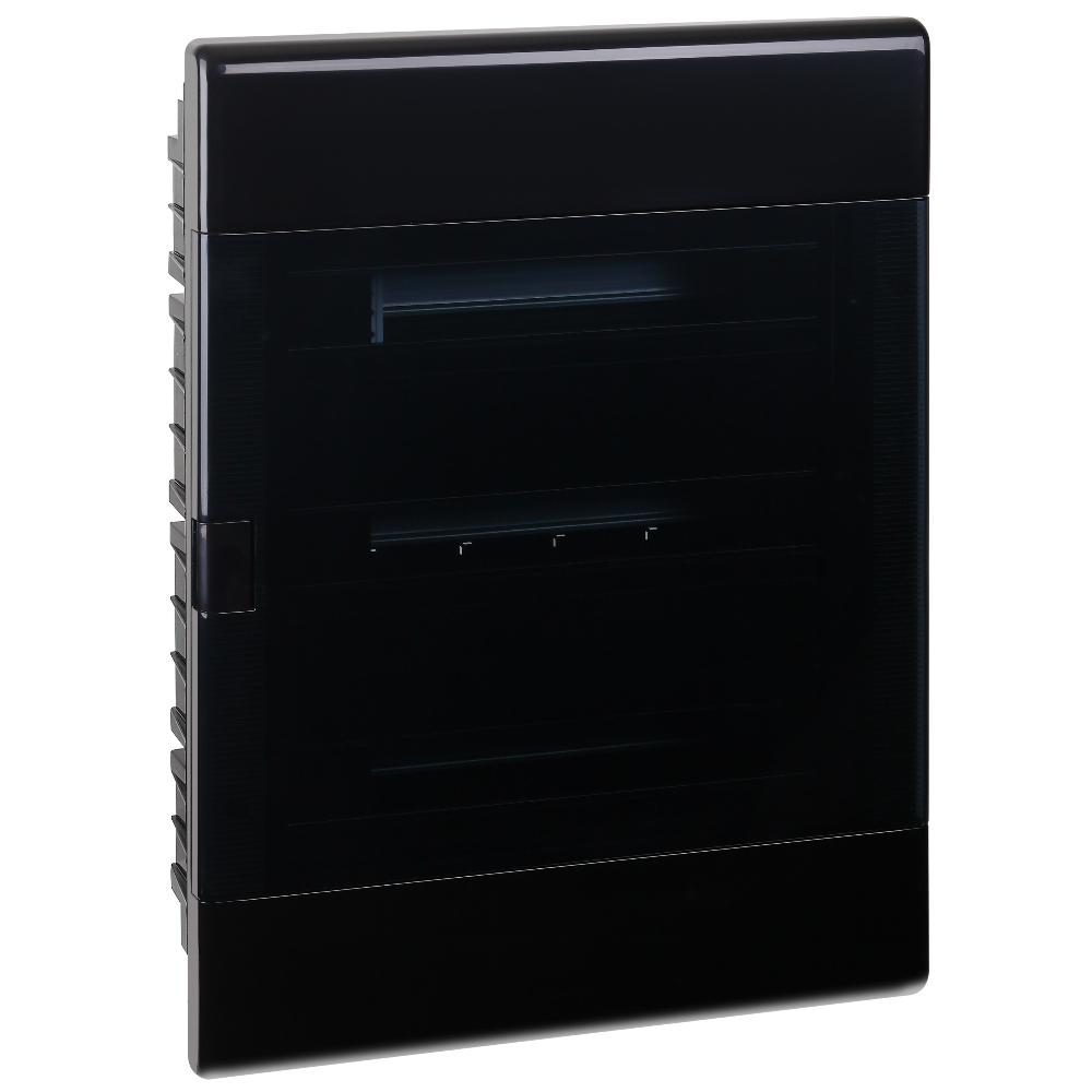 Щиток для скрытой проводки с горизонтальной прозрачной дверцей на 54 модуля черный IP41 (ЩРВ-П-54)