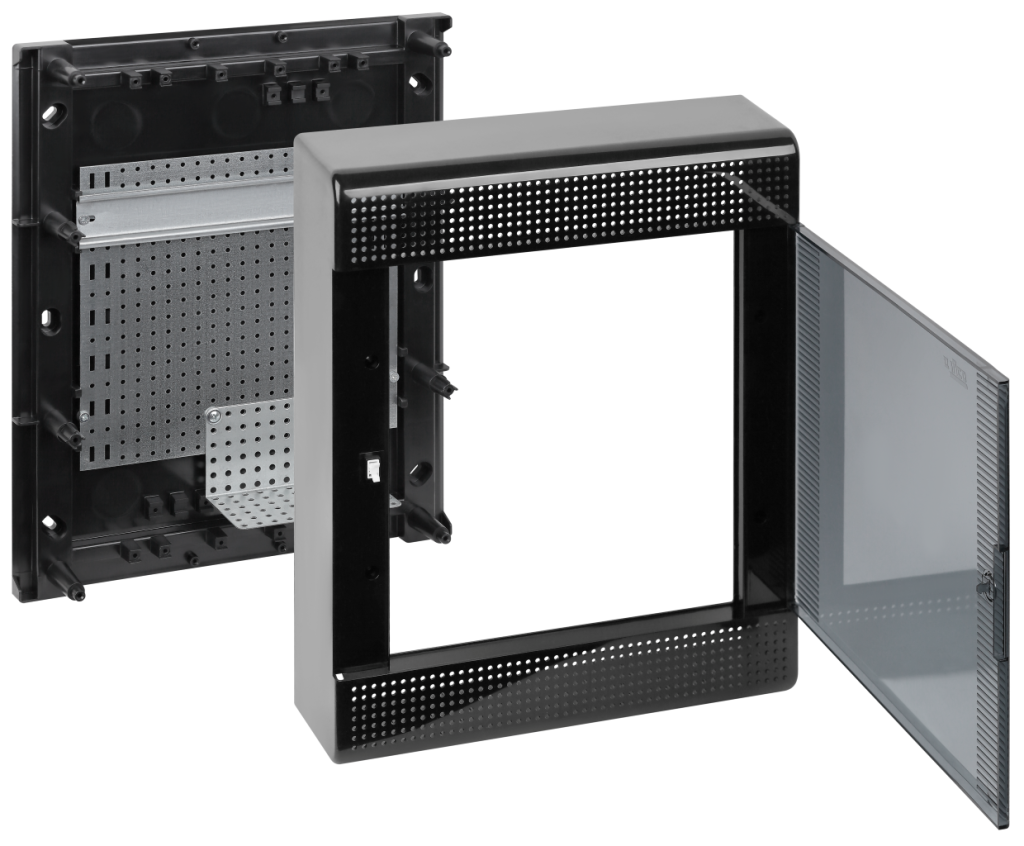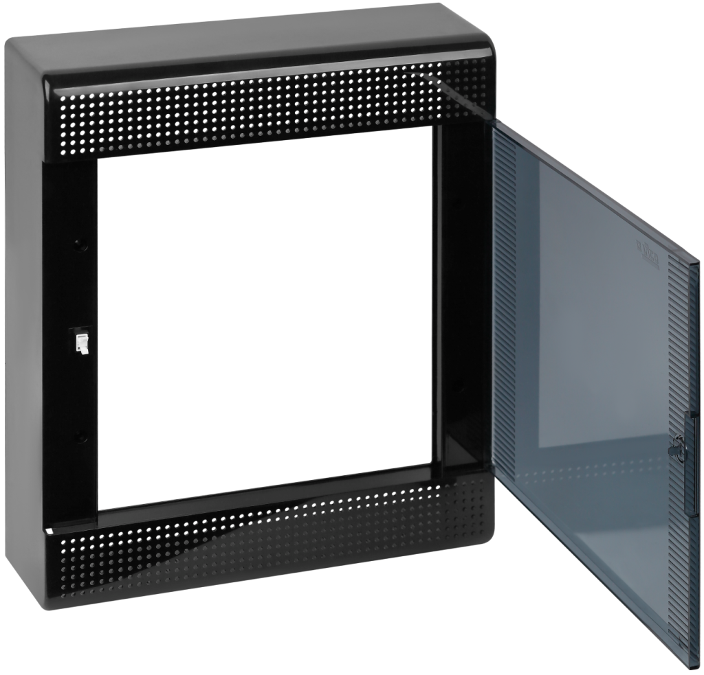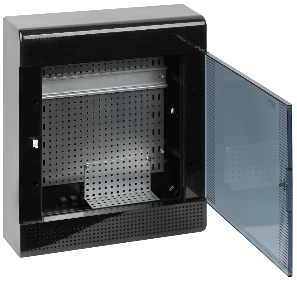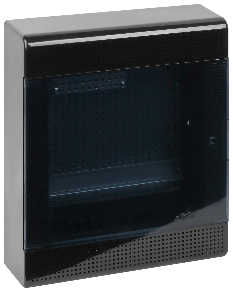 Щит слаботочный мультимедийный для открытой проводки с горизонтальной прозрачной дверцей на 24 модуля черный IP40 (ЩРн-П-24)