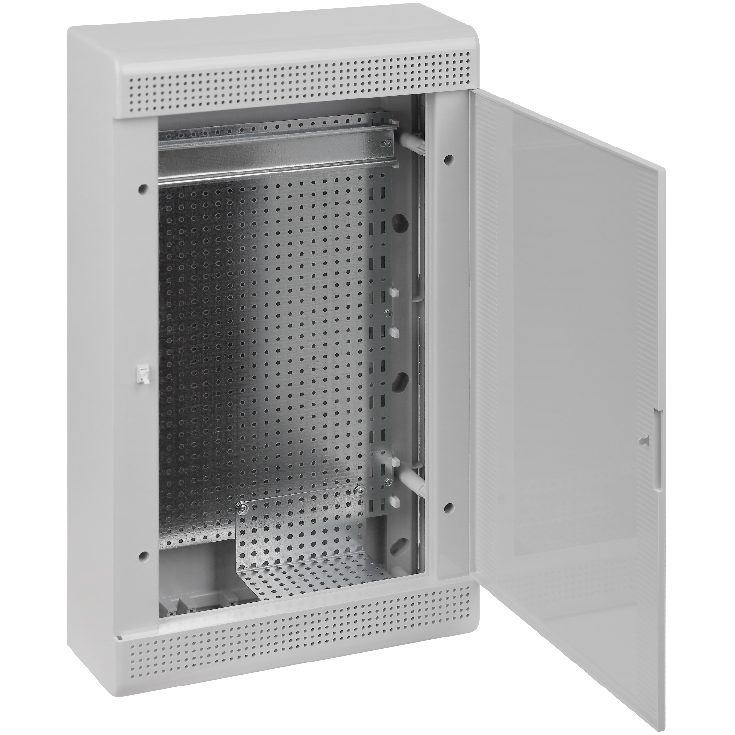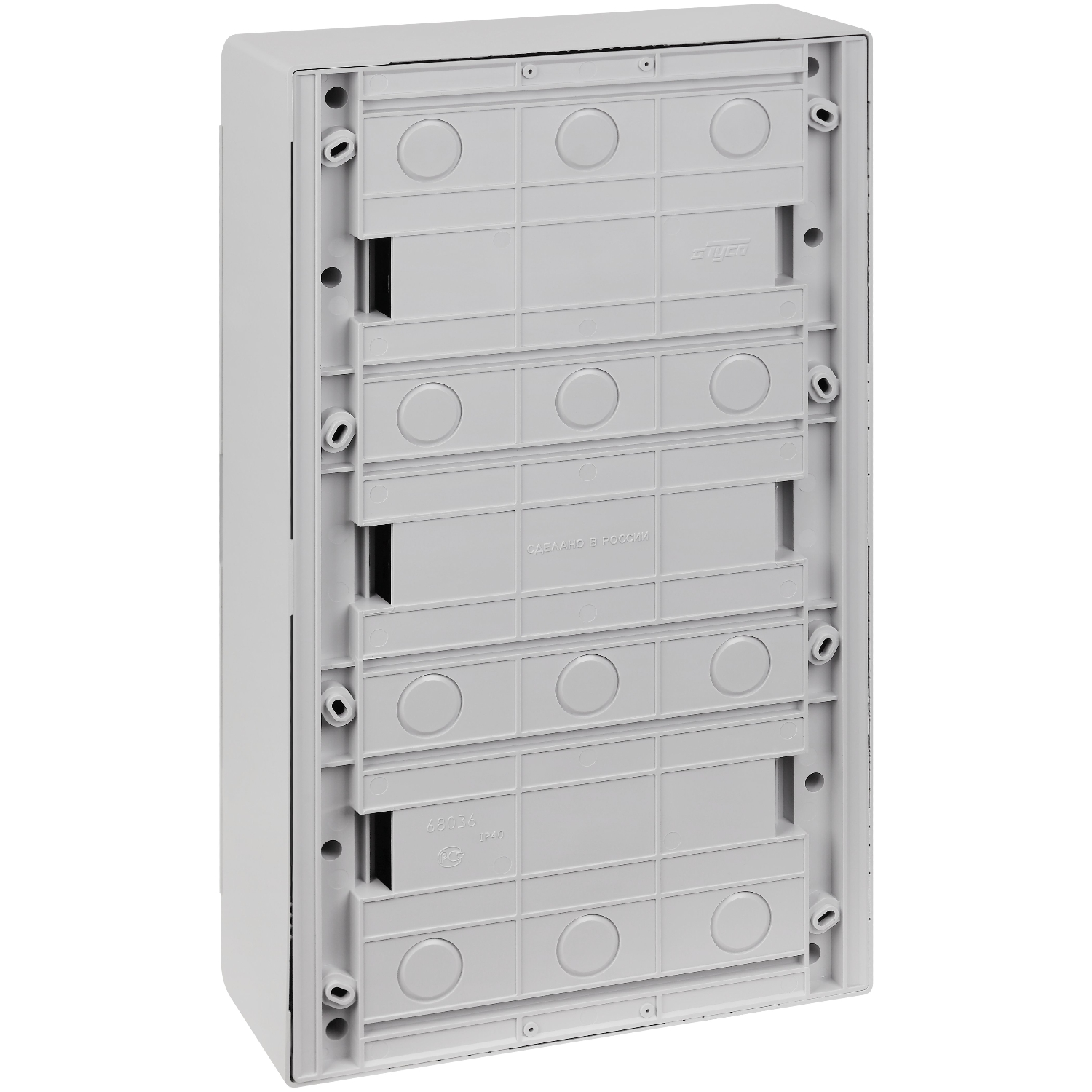 Щит слаботочный мультимедийный для открытой проводки с горизонтальной непрозрачной дверцей на 36 модулей серый IP40 (ЩРн-П-36)