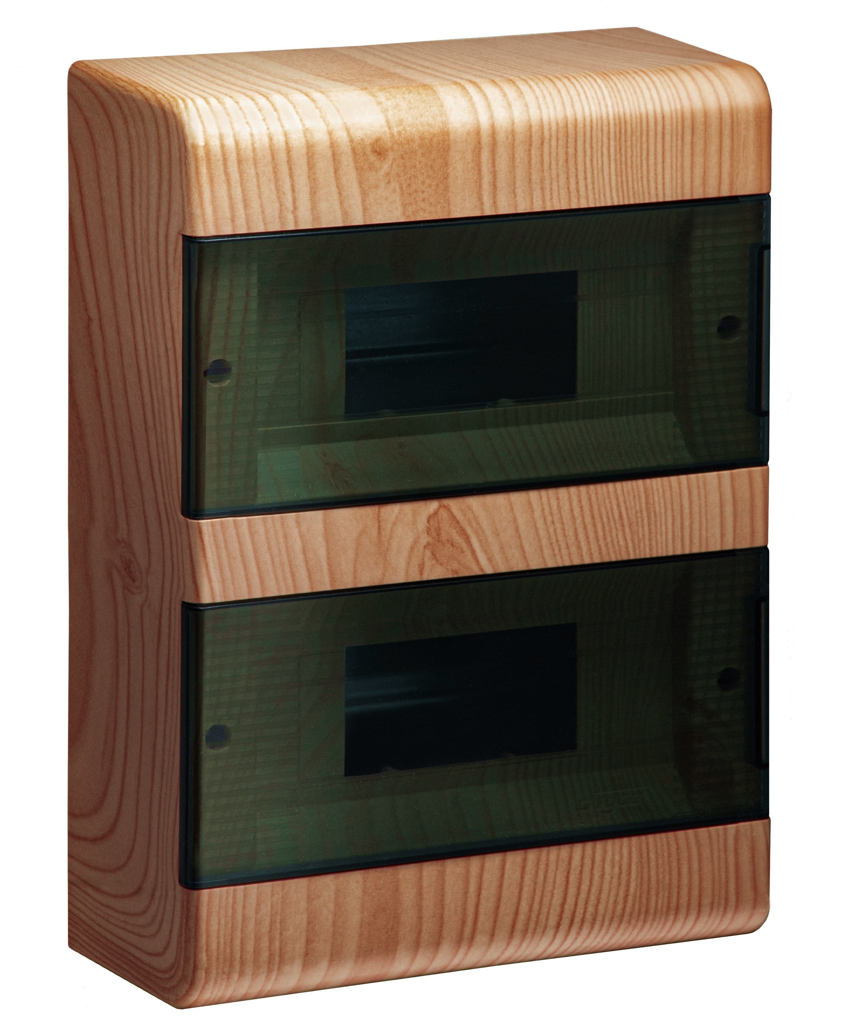 Щиток для открытой проводки с двумя горизонтальными дверцами на 18 модулей бук IP40 (ЩРН-П-18)