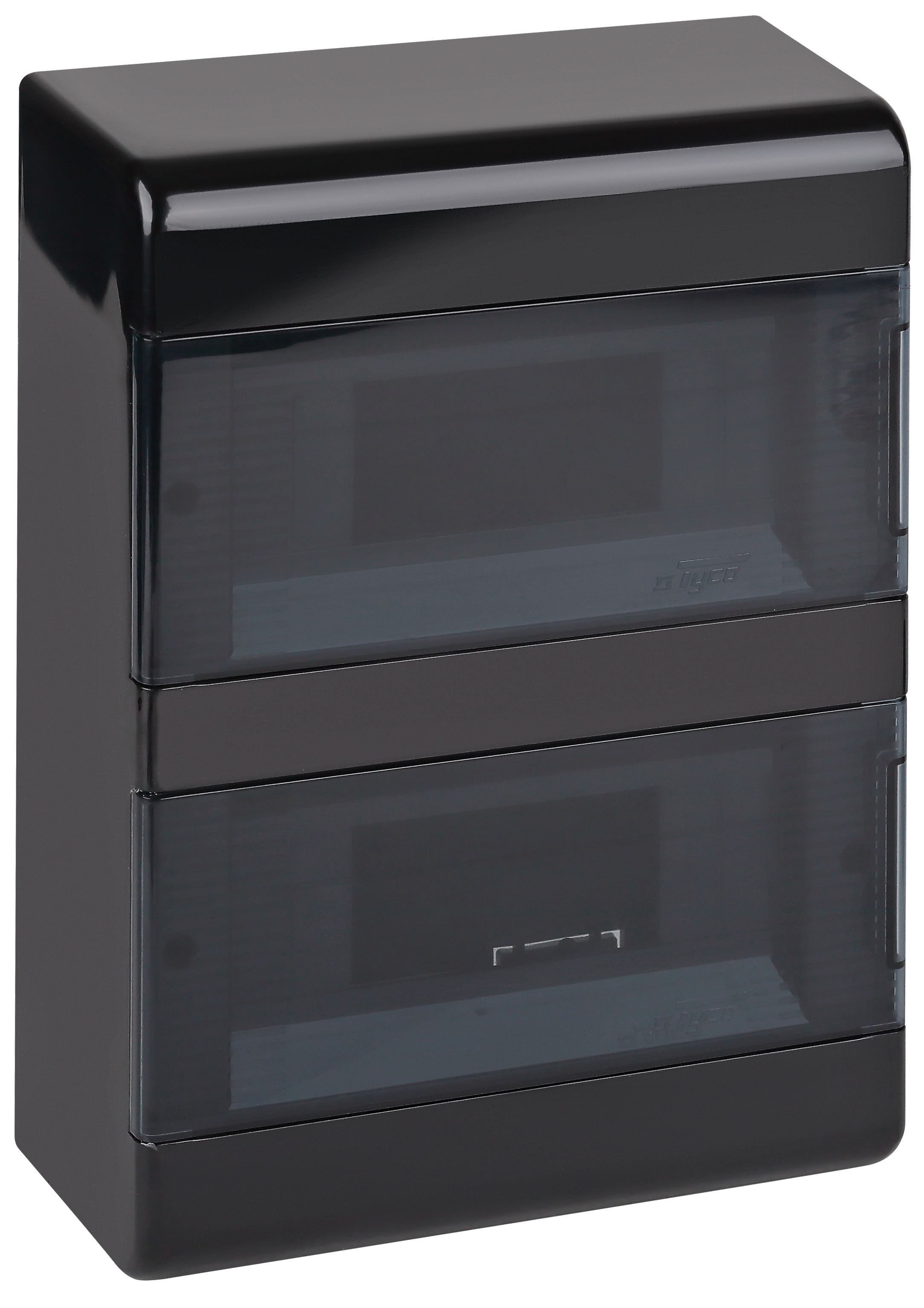 Щиток "Тусо" навесной с двумя горизонтальными дверцами на 18 модулей цвет черный, IP40. Минимальная партия отгрузки 1 уп.(6 шт). Назначение: предназначены для установки автоматических выключателей и устройств защитного отключения в жилых, административных и офисных помещениях. Отличительные особенности: высокое качество пластика, механическая прочность, богатая комплектация, перенавешиваемые дверцы, на внутренней стороне корпуса имеются насечки для ввода кабель-каналов, плоское основание для удобства монтажа, щитки упакованы в индивидуальную упаковку.