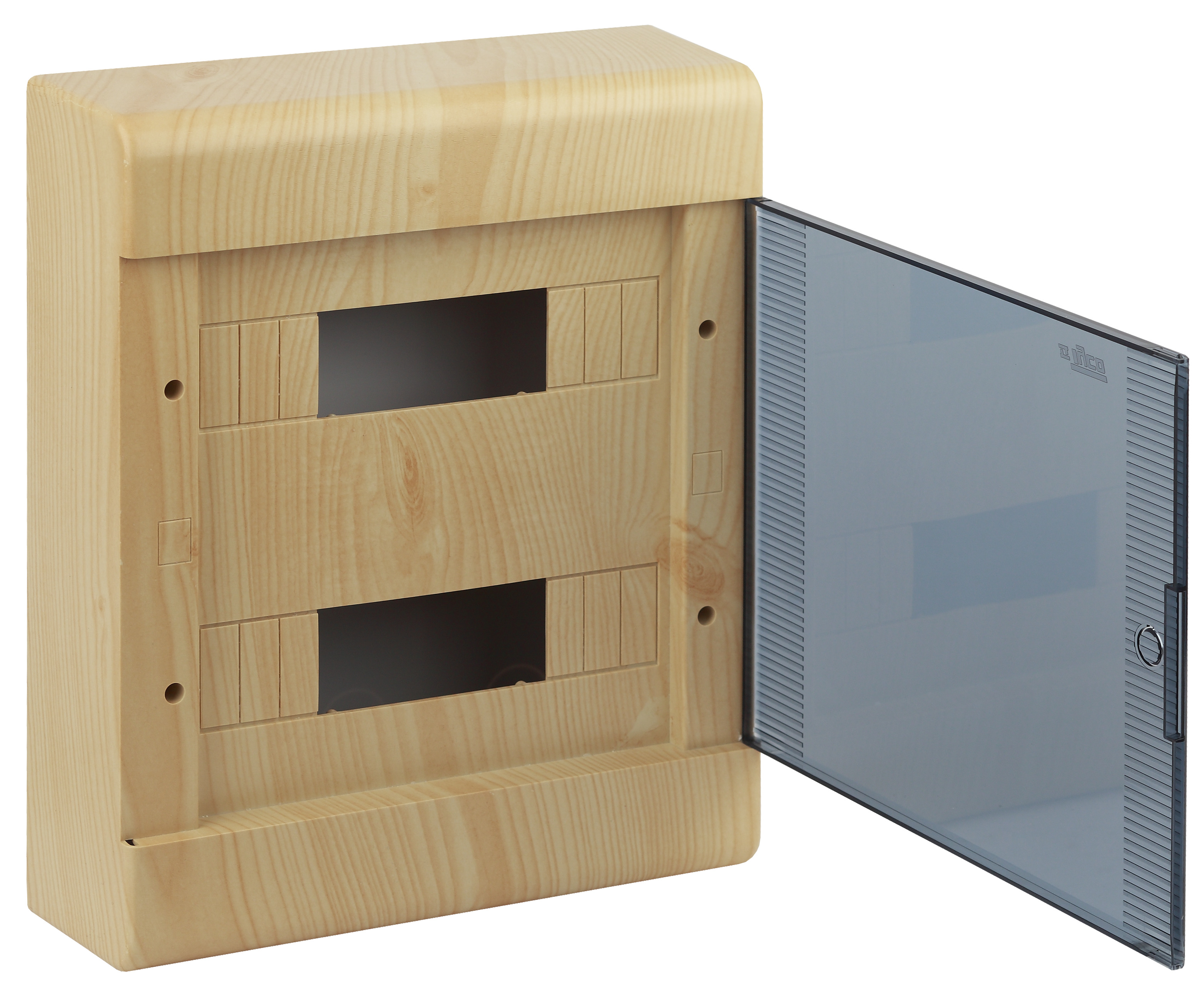 Щиток "Тусо" навесной с горизонтальной дверцей на 24 модуля цвет сосна, IP40. Минимальная партия отгрузки 1 шт. Назначение: предназначены для установки автоматических выключателей, устройств защитного отключения и любого прибора учета в жилых, административных и торговых помещениях. Отличительные особенности: высокое качество пластика, механическая прочность, богатая комплектация, перенавешиваемые дверцы, на внутренней части корпуса риски для ввода кабель-каналов любого размера, торцевые стороны щитка снабжены сменными панелями с рисками для подведения гофрированных и гладких труб диаметром 25, 32, 40 мм, регулируемые по глубине стойки крепления DIN-реек дают возможность монтажа модульного оборудования на разную глубину; щитки упакованы в индивидуальную упаковку.