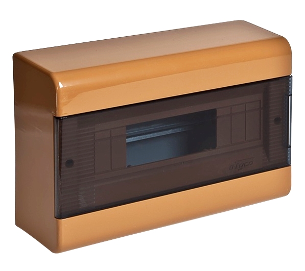 Щиток "Тусо" навесной с горизонтальной дверцей на 9 модулей цвет коричневый, IP40. Минимальная партия отгрузки 1 уп.(10 шт). Назначение: предназначены для установки автоматических выключателей и устройств защитного отключения в жилых, административных и офисных помещениях. Отличительные особенности: высокое качество пластика, механическая прочность, богатая комплектация, перенавешиваемая дверца, на внутренней стороне корпуса имеются насечки для ввода кабель-каналов, плоское основание для удобства монтажа, щитки упакованы в индивидуальную упаковку.