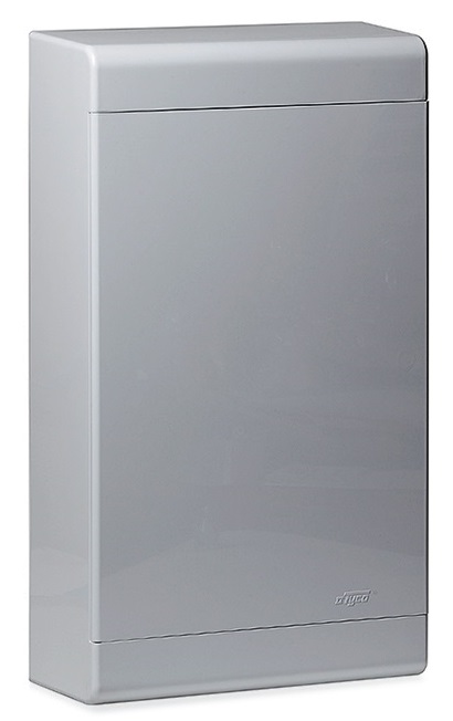 Щиток "Тусо" навесной с горизонтальной непрозрачной дверцей на 36 модулей, цвет серый, IP40. Минимальная партия отгрузки 1 шт. Назначение: предназначены для установки автоматических выключателей, устройств защитного отключения и любого нестандартного счетчика или прибора учета в жилых, административных и торговых помещениях. Отличительные особенности: высокое качество пластика; механическая прочность; богатая комплектация; перенавешиваемые дверцы; на внутренней части корпуса риски для ввода кабель-каналов любого размера; торцевые стороны щитка снабжены сменными панелями с рисками для подведения гофрированных и гладких труб диаметром 25, 32, 40 мм; регулируемые по глубине стойки крепления DIN-реек дают возможность монтажа модульного оборудования на разную глубину; щитки упакованы в индивидуальную упаковку.