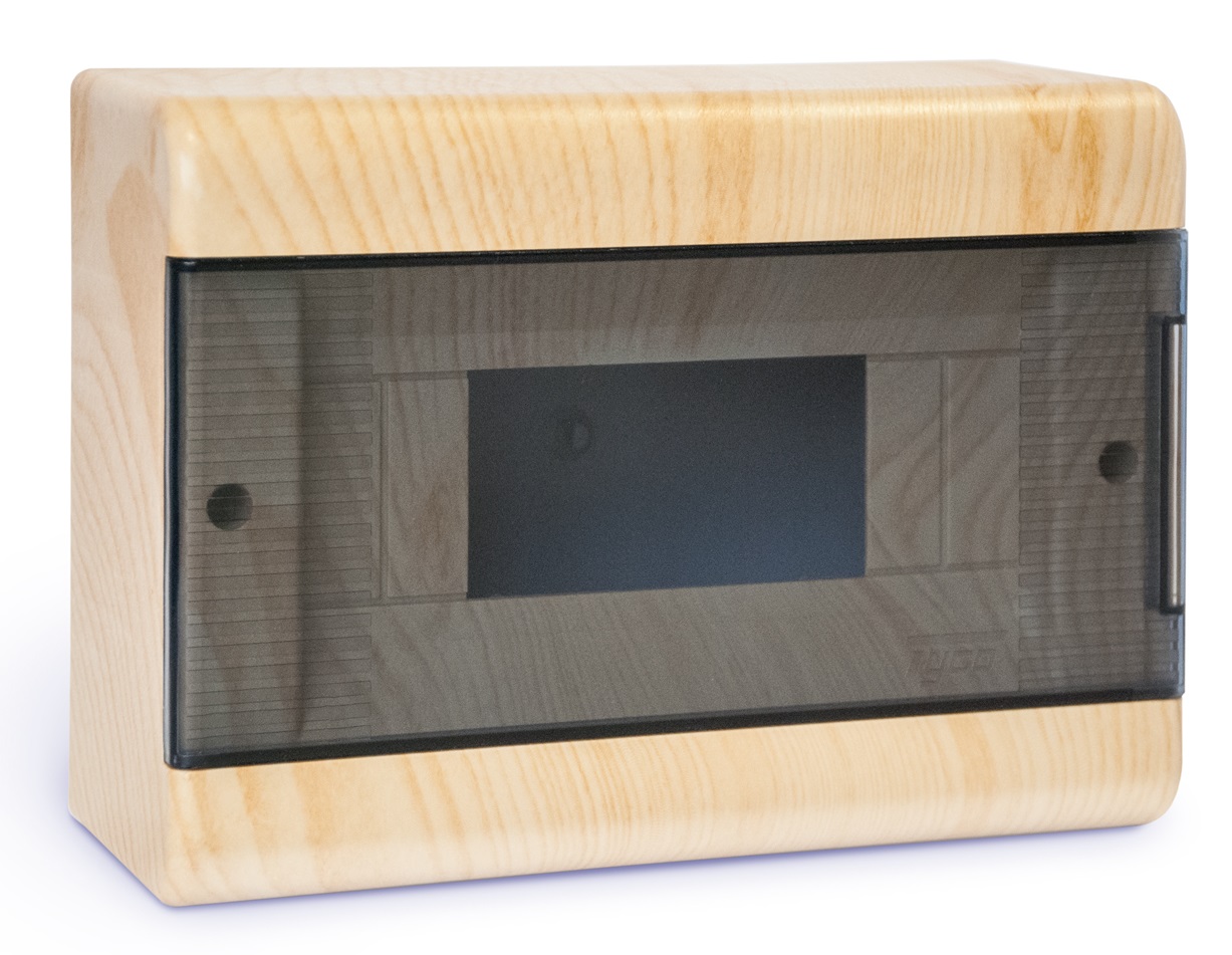 Щиток "Тусо" навесной с горизонтальной дверцей на 9 модулей цвет сосна, IP40. Минимальная партия отгрузки 1 уп.(10 шт). Назначение: предназначены для установки автоматических выключателей и устройств защитного отключения в жилых, административных и офисных помещениях. Отличительные особенности: высокое качество пластика, механическая прочность, металлическая DIN-рейка, пломбировочные ушки, перенавешиваемая дверца, на внутренней стороне корпуса имеются насечки для ввода кабель-каналов, плоское основание для удобства монтажа, щитки упакованы в индивидуальную упаковку.