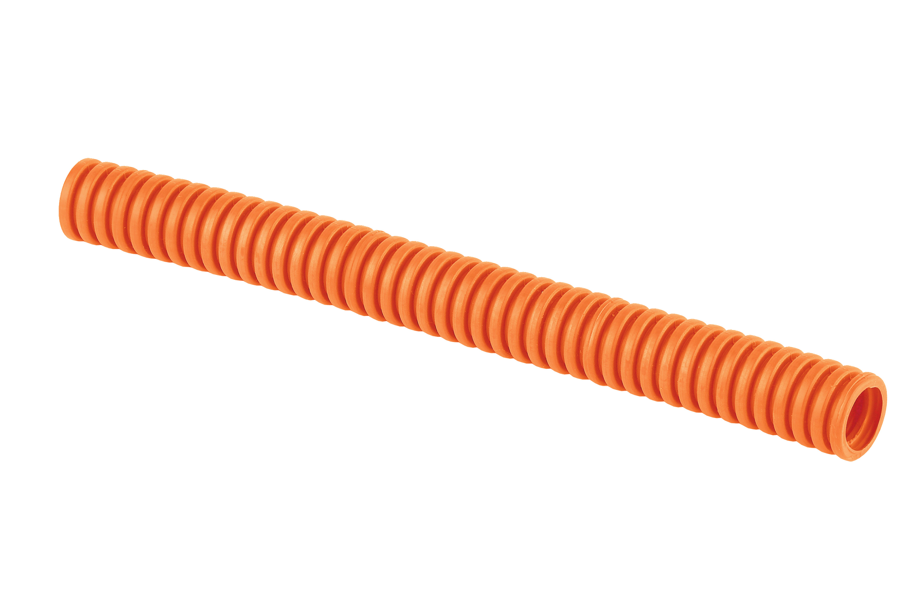 Гофрированная труба из полипропилена (ПП) безгалогенная (HF) диаметром 20 мм, оранжевого цвета, легкого типа, без зонда. Бухта 20 м.