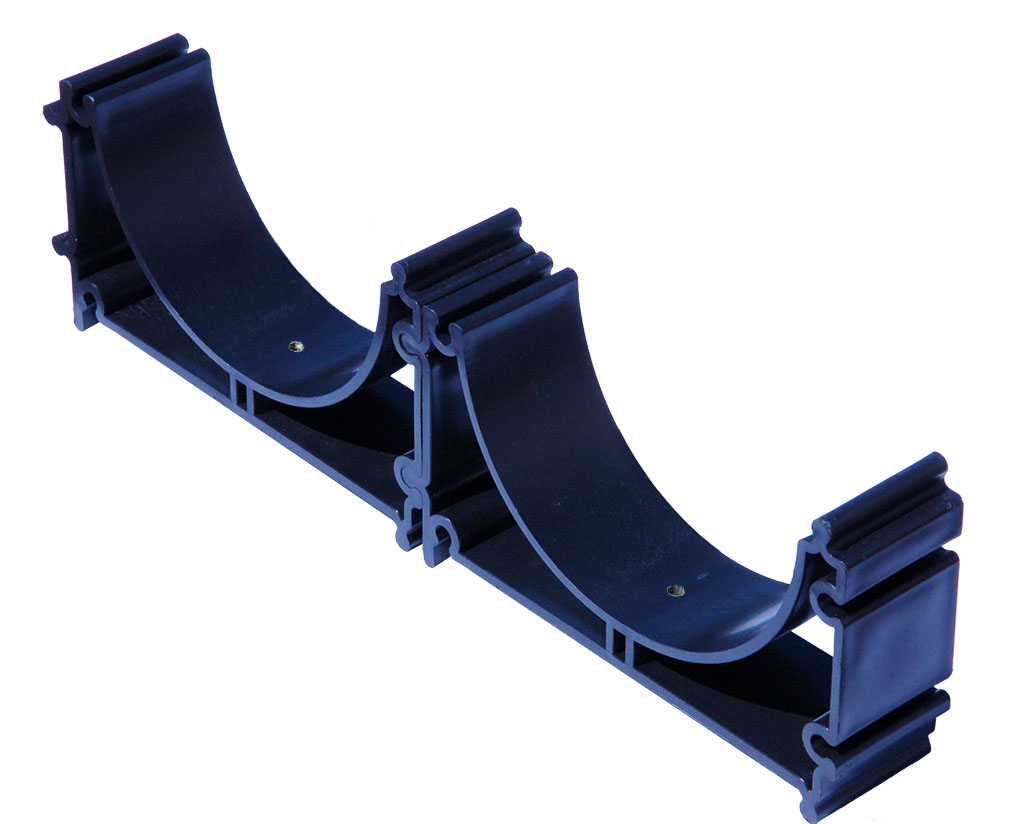 Держатель расстояния ДРУ-110 и ДРУ-160 используется при прокладывании кабельной трассы и предназначен для фиксации одной или нескольких труб в единой конструкции. Задачей кластера является надежная фиксация труб, обеспечение расстояния между трубами одного размера. Фиксация трубы возможна как в горизонтальном так и в вертикальном положении. Держатель расстояния также может быть использован как крепёжный элемент. Для этого в основании держателя имеется отверстие для возможного крепления труб на бетонных или любых твёрдых поверхностях.