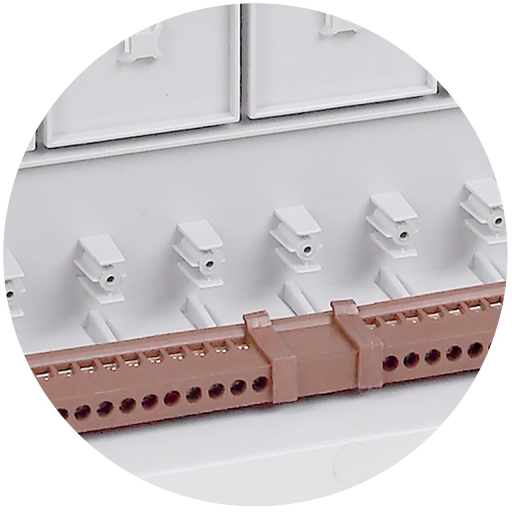 Предусмотрены специальные стойки для крепления дополнительного пластикового держателя нулевых шин.